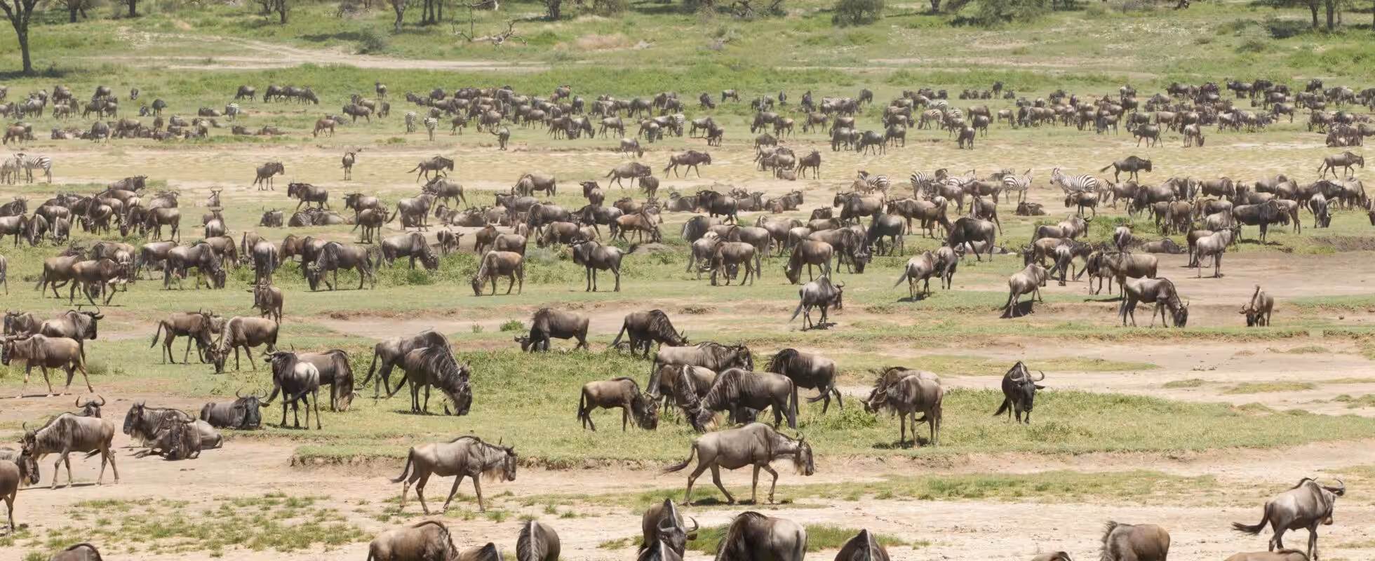 Ab Ende Dezember kommt die große Tierwanderung (Great Migration) mit ihren ca. 2,5 Millionen Tieren in der Ndutu Region an. Gnus, Zebras und Gazellen kommen hierher, um ihre Kälber zur Welt zu gebären und bleiben bis etwa Anfang April hier. Von Dezember bis März werden täglich Tausende von Tieren geboren. Das Gras in dieser Gegend ist reich an Nährstoffen für die Jungtiere. Und weil es relativ kurz ist, können die Tiere schon von weitem herannahende Raubtiere erkennen. Es ist daher ein sicherer Ort, um junge Zebras und Gnus aufzuziehen. Ndutu ist eine landschaftlich reizvolle Region mit einer hohen Wildtierdichte. Die Kalbungssaison lockt viele Raubtiere in die offenen Ebenen, darunter Löwen, Geparden, Leoparden, Hyänen und eine große Anzahl von Wildhunden!